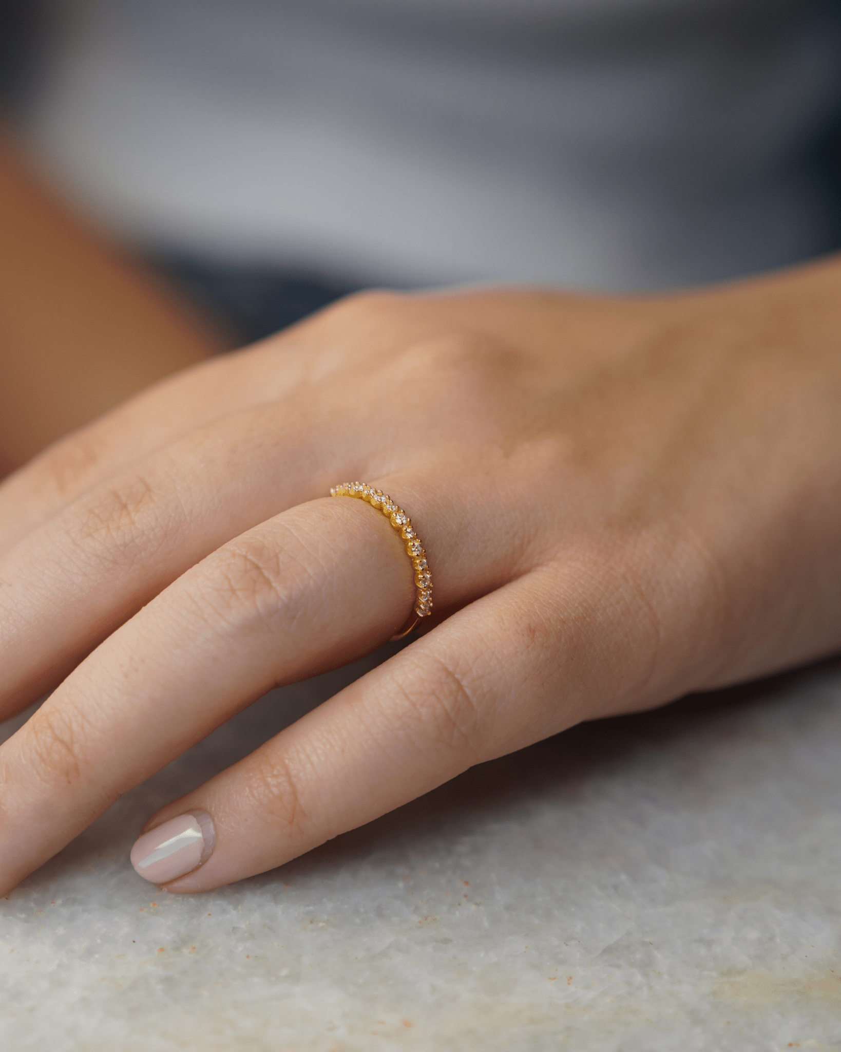 Un básico atemporal que nunca falla. Este anillo de plata .925 con chapa de oro de 18k está decorado con una línea de circonias blancas que atrapan la luz con sutileza. Ideal para usar solo, en combinación o como anillo de compromiso simbólico.