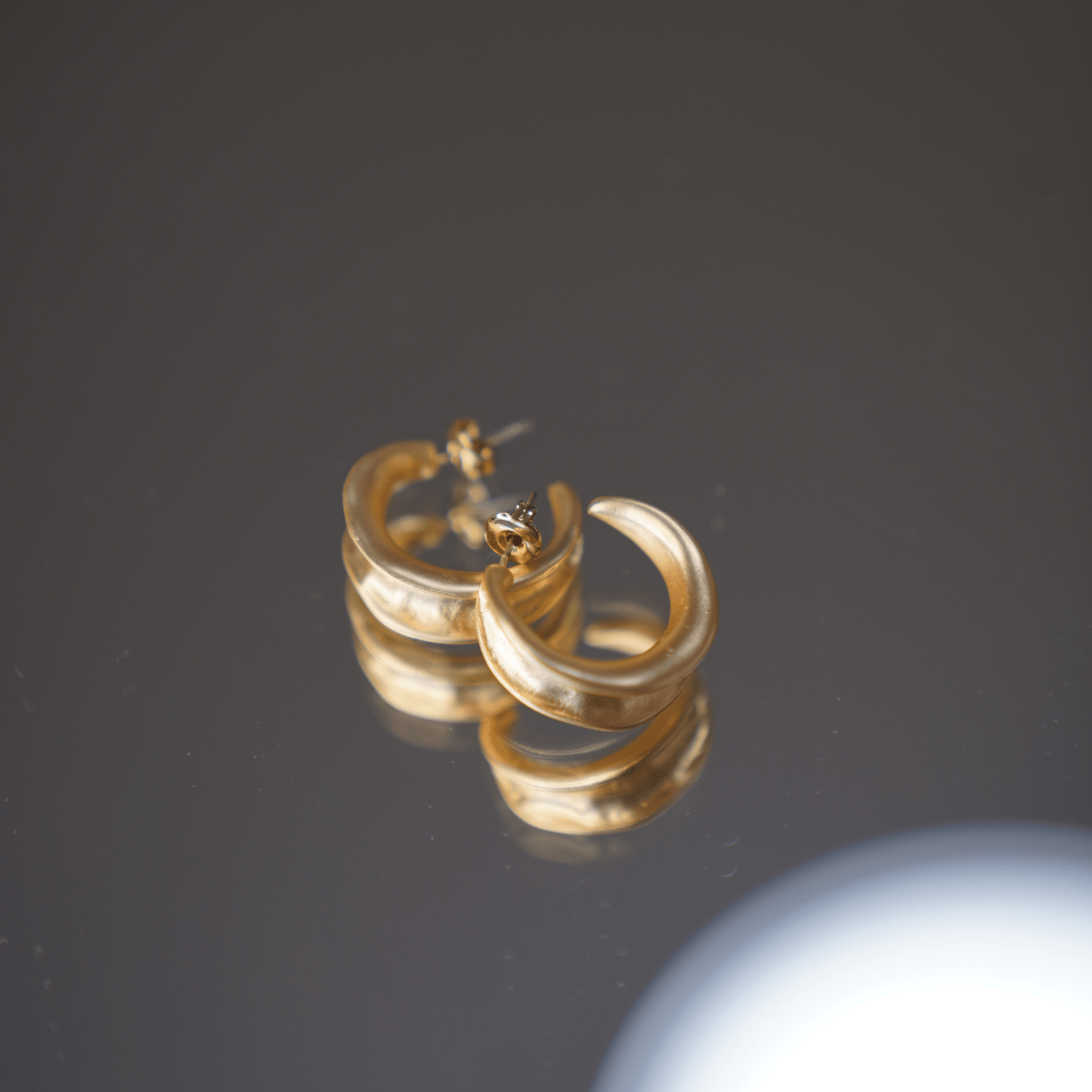 Aros de acero inoxidable en tono dorado con acabado satinado que aporta un estilo moderno y elegante. Su forma semicircular gruesa los convierte en un accesorio llamativo pero versátil, ideal para cualquier ocasión. Ligeros, resistentes y cómodos para uso diario. No se oxidan ni pierden su brillo con el tiempo