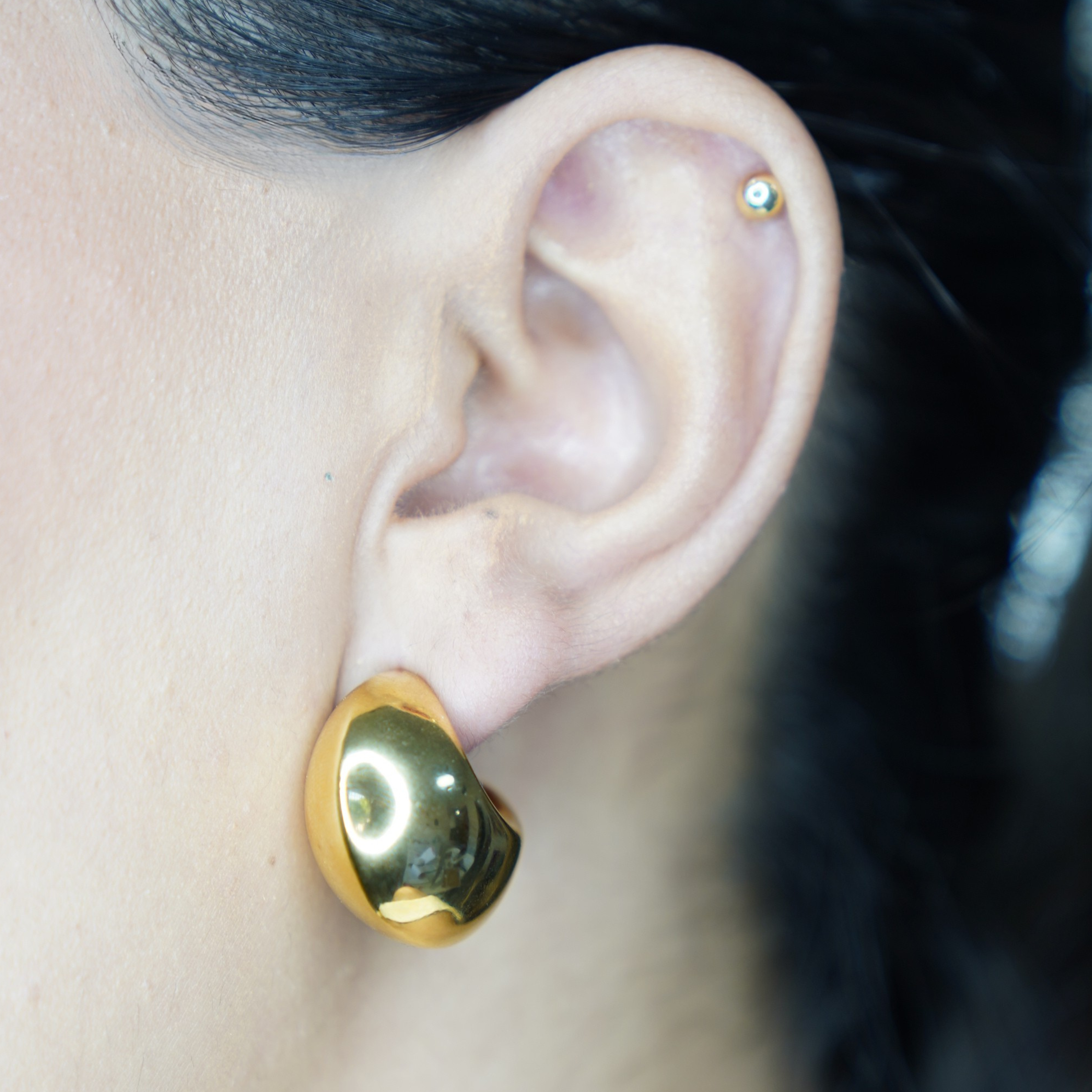 Con una silueta redondeada y un acabado tipo espejo, los aretes Sfera capturan la esencia del minimalismo elegante. Su diseño curvo y pulido los convierte en una pieza versátil que eleva cualquier look, ya sea casual o de noche. Un básico con presencia.
