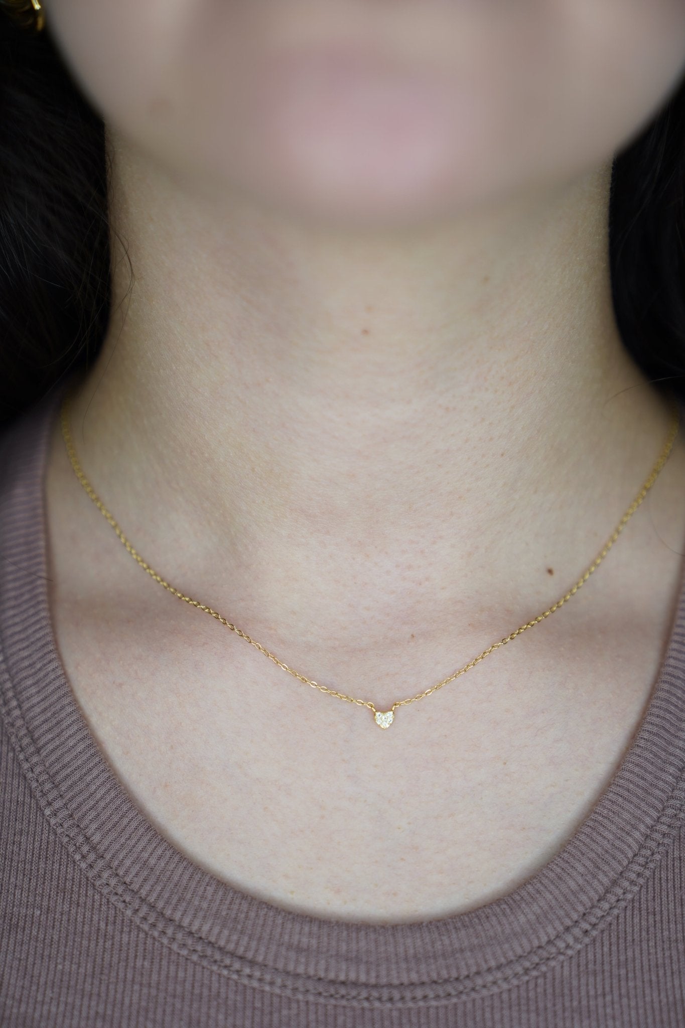 Un toque sutil de brillo que puedes llevar todos los días. Este collar dorado con un pequeño dije en forma de corazón con incrustaciones de zirconias es perfecto para quienes aman los accesorios discretos pero con encanto.