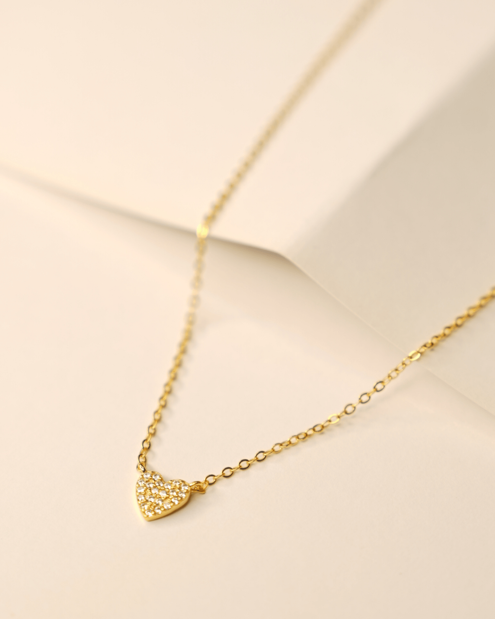 El detalle perfecto para expresar cariño. Este collar de plata .925 con chapa de oro 18k tiene un corazón delicado completamente cubierto de circonias brillantes. Un diseño simple pero lleno de intención.