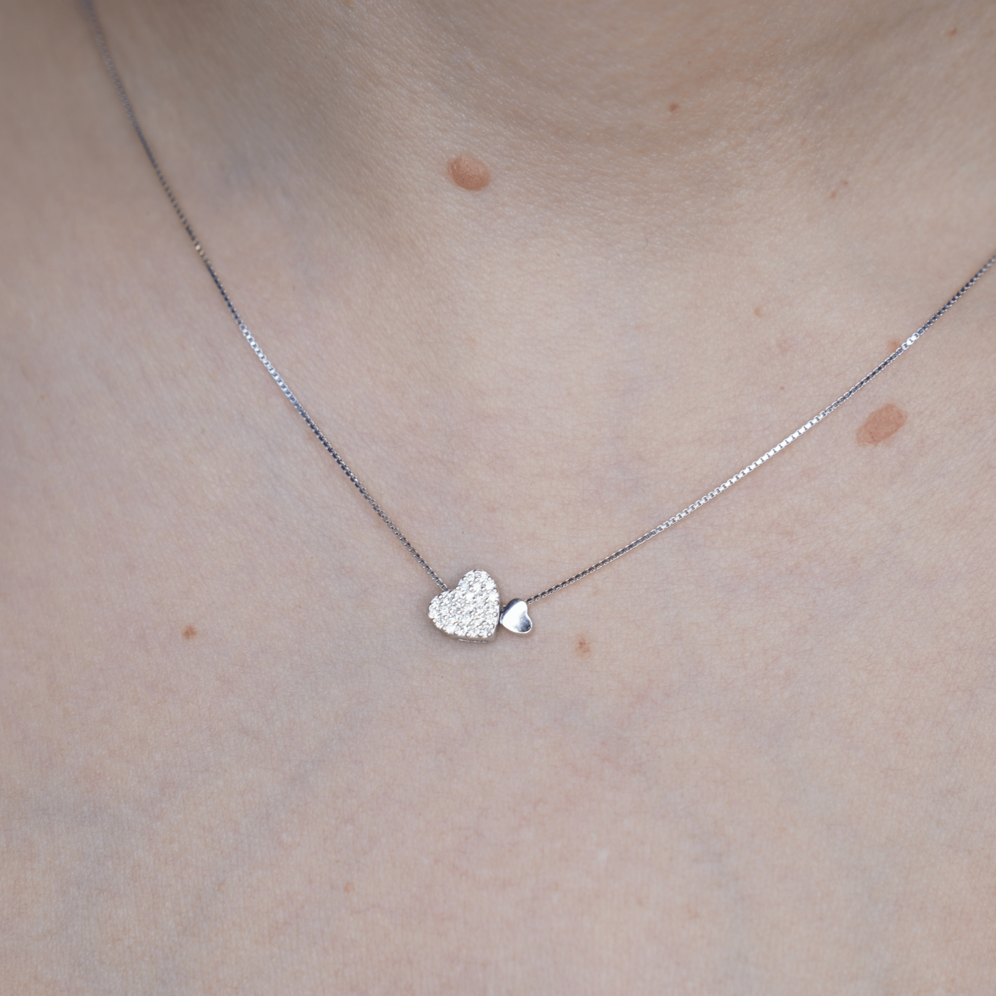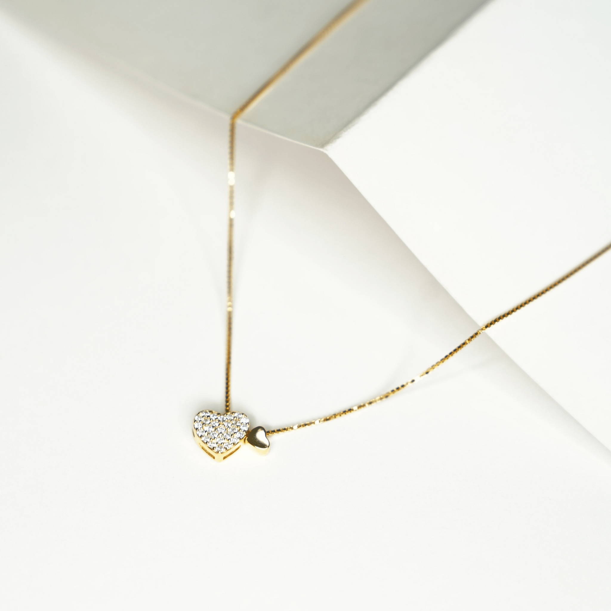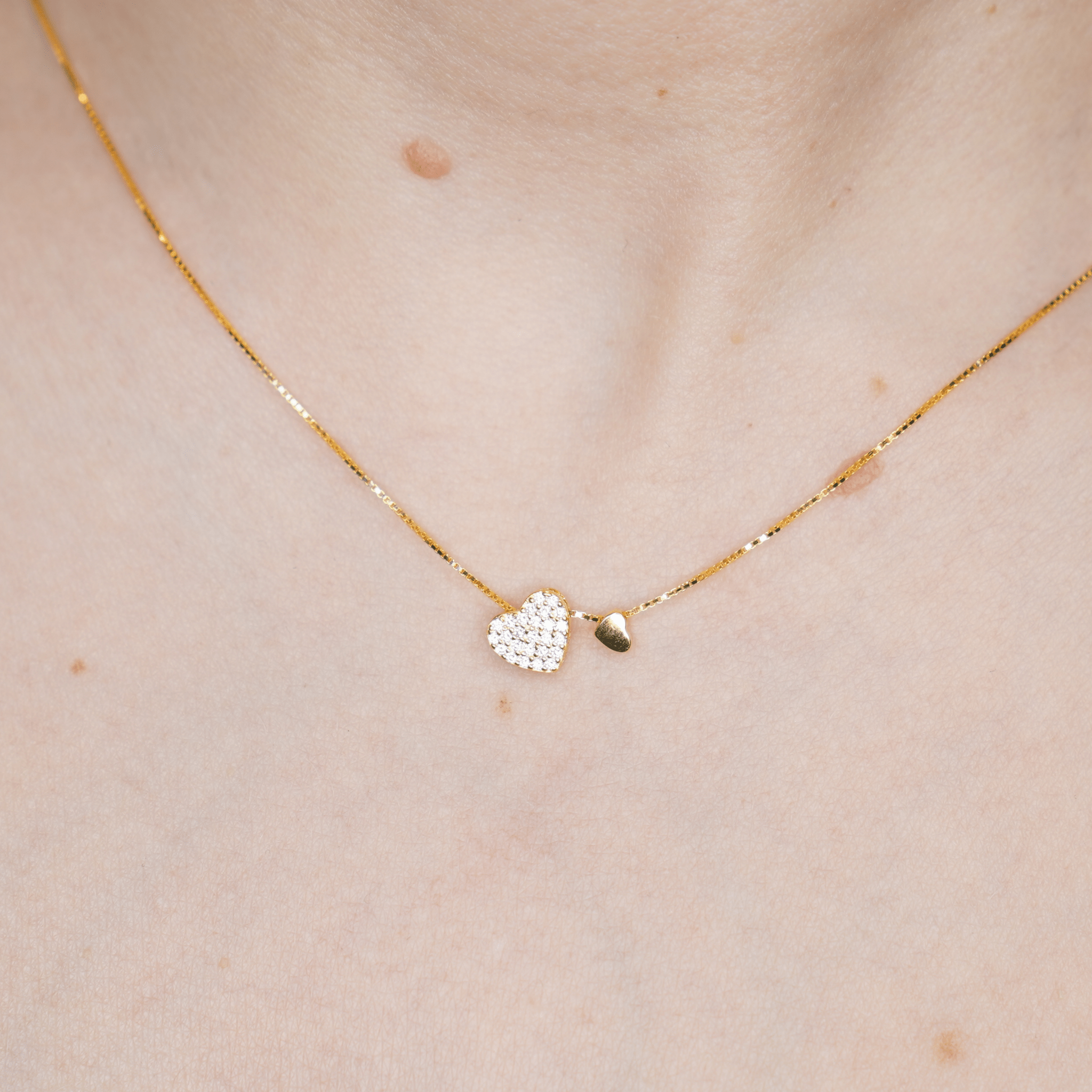 Collar Twin Hearts en plata .925 con baño de oro y detalle de circonia brillante. Un diseño delicado y elegante, disponible en dorado y plateado—perfecto para llevar todos los días con un toque sutil de luz. ✨